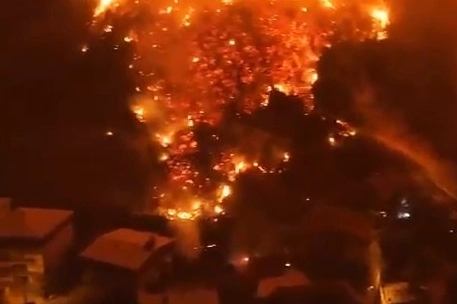 Bursa'nın Kestel ile Gürsu ilçeleri arasında başlayan orman yangını, rüzgarın etkisiyle Karahıdır Mahallesi'ne ulaştı. Yetkililerin çağrısı üzerine boşaltına mahallede vatandaşlar alevlerin arasında kalırken, bazı araçlarda ise hasar meydana geldi. Yangının mahallenin çevresini sardığı ve hızla ilerlediği görülüyor. Ayrıca, geniş bir alana yayılan yangın çevredeki taş ocaklarına kadar da ulaştı. Yangın sebebiyle bölgedeki taş ocaklarında patlamalar meydana geldi. Patlamaların ardından bölgede büyük bir gürültü duyulurken, yükselen alevler çevre ilçelerden de fark ediliyor.