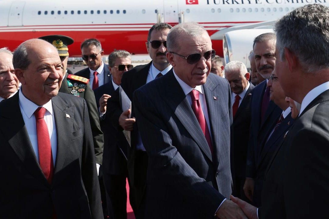 Erdoğan: ''Adada kendilerini Kıbrıs adasının tek hakimi olarak gören şımarık bir zihniyet var''Adanın güneyinde ise maalesef kendilerini Kıbrıs adasının tek hakimi olarak gören şımarık bir zihniyet var. Öyle bir vehamet ile karşı karşıyayız ki, Rum lider EOKA teröristlerini anma törenlerine katılıyor. Kıbrıs Türk'ü kardeşlerimiz güneye geçtiklerinde saldırıya uğruyor, tutuklanıyor, güneydeki camiler kundaklanıyor. Rumlar Kıbrıs Türk'ü ile siyasi gücü ve adanın doğal kaynakları da dahil ekonomik refahı paylaşma niyetlerinin olmadığını açıkça ortaya koyuyor. İşte geçenlerde maalesef Yunanistan Savunma Bakanı yine akla ziyan açıklamalar yaptı. Sayın Miçotakis'le yurt dışında bir araya geldik ve kendilerine ayın 20'sinde biz Kuzey Kıbrıs'tayız, duydum ki, sen de güneydesin, herhalde oradan Dendias gibi bizlere sataşma yapmazsın... ve böyle bir şey düşünmediğini söyledi. Böyle bir şey düşünmüyorsan mesele yok dedik yola devam.