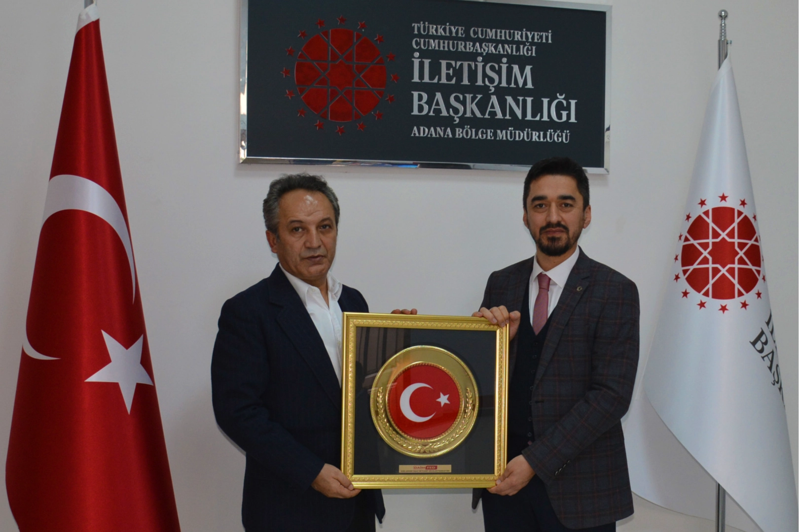 Görüşme sonrasında DAİMFED Başkanı Mustafa Karslıoğlu, İletişim Başkanlığı Adana Bölge Müdürü Mustafa Yalınız'da hediye takdim etti ve günün anısına hatıra fotoğrafı çekinildi.