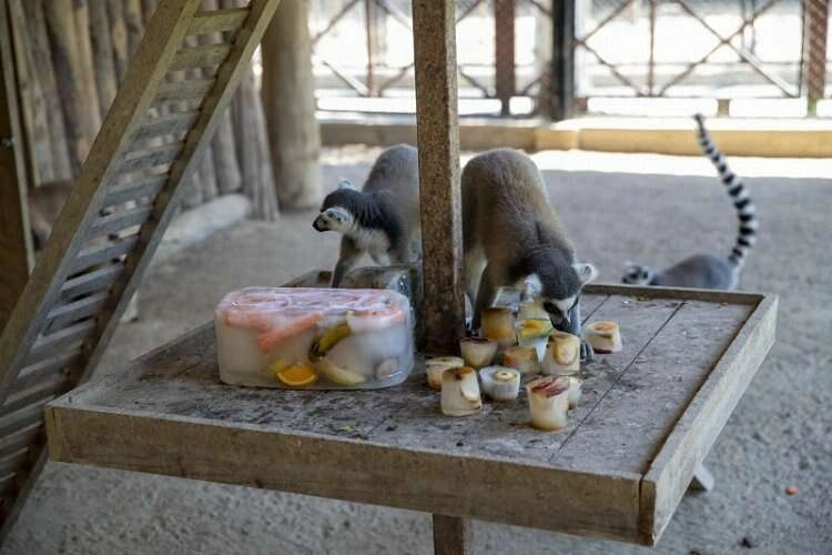 Doğa Parkı sakinlerinin sıcak havalardan olumsuz etkilenmemesi adına yapılan uygulama sayesinde hayvanlar, serinlerken besleniyor. Türlerine göre yaşam alanlarında yer alan yapay havuz ve şelaleler de hayvanların serinlemesini sağlarken, günün belirli saatlerinde özel olarak hazırlanan buzlu meyveler ikram ediliyor. Doğa parkı sakinlerine; içerisinde elma, armut, muz, kivi, portakal, havuç, kuru incir, salatalık, marul gibi meyve ve sebzelerin yanı sıra ceviz, fındık gibi kuruyemişlerin de yer aldığı buzlu meyve kalıpları veriliyor. Bu sayede hayvanlar, serinlerken beslenmenin keyfini çıkartıyor.