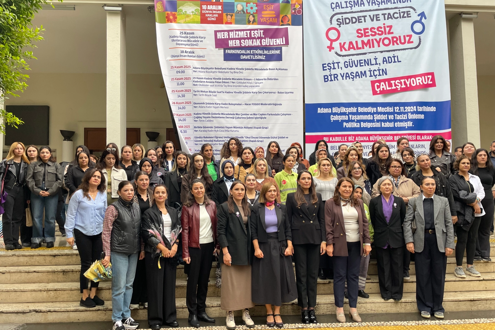 25 Kasım Kadına Yönelik Şiddete Karşı Uluslararası Mücadele Günü için Adana Büyükşehir Belediyesi önünde basın açıklaması gerçekleştirildi. Açıklamaya çok sayıda kadın personel katıldı. Açıklamayı katılanlar adına Adana Büyükşehir Belediye Kadın ve Aile Hizmetleri Daire Başkanı Ayten Doğançay okudu. Ayten Doğançay, şiddetin ancak eşitlik ve ayrımcılıktan arınmış bir toplumla önlenebileceğini belirtti.
