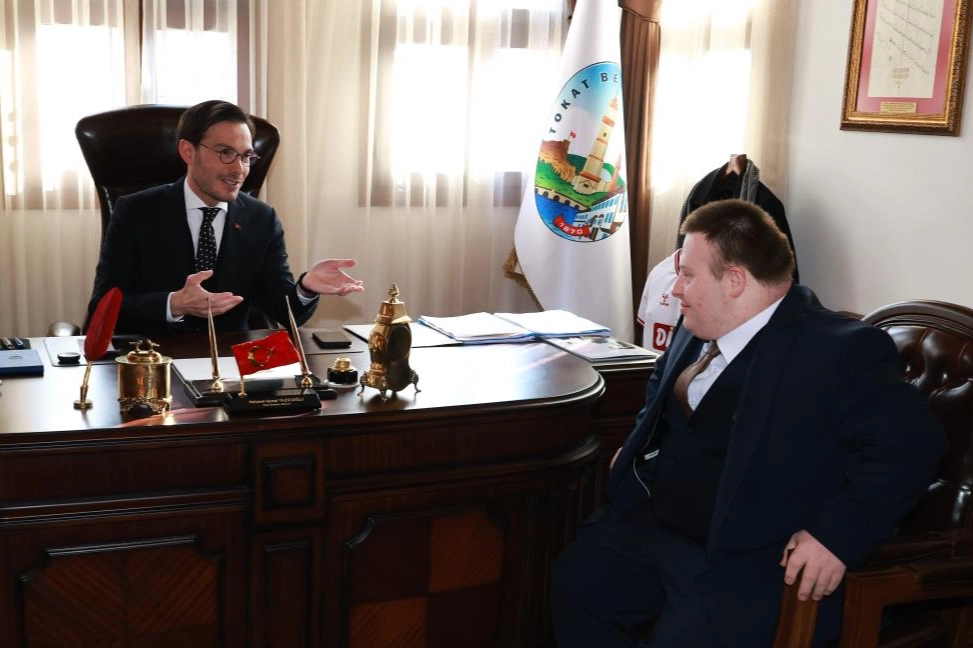 Tokat’ta yaşayan 29 yaşındaki down sendromlu Ethem Ay, Tokat Belediyesi’nde Özel Kalem Müdürü olarak görevine başladı. Ethem Ay, bir süre önce Tokat Belediye Başkanı Mehmet Kemal Yazıcıoğlu’nu makamında ziyaret ederek sohbet etmiş, bu görüşmenin ardından Başkan Yazıcıoğlu, Ay’ı ekibine dahil etmeye karar vermişti.