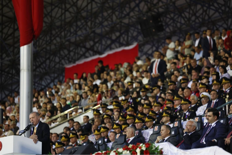 "Yürekleri Türkiye için atan bu evlatlarımızın heyecanına ortak olmaktan ayrı bir mutluluk duyduğumu özellikle ifade etmek istiyorum. Bugün 881'i subay, 4 bin 130'u astsubay olmak üzere 2024-2025 eğitim öğretim dönemini başarıyla tamamlayan 5 bin 11 kardeşimizi hep birlikte mezun ediyoruz. Aynı zamanda dost ve kardeş ülkelerden gelerek akademide öğrenim gören 15 subayımızın mezuniyet heyecanına iştirak ediyoruz. Dereceye giren kardeşlerimiz başta olmak üzere, mezuniyet diplomalarını alan 5 bin 11 subay ve astsubayımızın her birini tebrik ediyorum. Bugün, üniformalarını vakar, cesaret ve sorumlulukla kuşanan siz gençlerimizin tek tek alınlarından öpüyorum. Karşımdaki şu tablo kararlılığın resmidir. Şu tablo, Türkiye'nin güvenlik duvarıdır. Şu tablo, yarınlarınız için bir söz, bugünümüz için bir güvencedir. Her birinizle en az aileleriniz, komutanlarınız, hocalarımız kadar gurur duyuyorum."