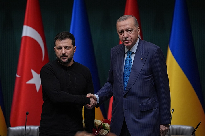 Türkiye'nin barış diplomasi çabalarıSon 3 yılda izledikleri aktif diplomasi dikkate alındığında Rusya, Ukrayna ve ABD arasında önümüzdeki dönemde gerçekleştirilmesi muhtemel görüşmeler için Türkiye'nin ideal bir ev sahibi olacağını belirten Erdoğan, "Sayın Zelenski’yle görüşmemde Türkiye’nin Ukrayna’nın toprak bütünlüğüne, egemenliğine ve bağımsızlığına olan kuvvetli desteğini ifade ettim. Aynı zamanda müzakere sürecinin kalıcı bir barışla sonuçlandırılması için her türlü desteği vereceğimizin altını çizdim. Çok sayıda masumun ölümüne ve muazzam bir yıkıma neden olan bu savaş artık sona ermelidir. Karadeniz’de ticari seyrüsefer emniyetini hedefleyen bir düzenlemenin hayata geçirilmesi için ülkemizin çalışmayı sürdüreceğini de belirttim. Karadeniz’de hayata geçirilebilecek böyle bir düzenlemenin müzakerelere giden süreçte önemli bir güven artırıcı tedbir işlevi göreceğine inanıyoruz" açıklamasını yaptı.