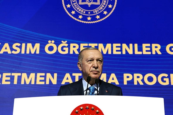 Öğretmenlerin, bilgiyi hikmetle yoğurup kalpleri terbiye eden birer gönül işçisi, milletin değerlerini yarınlara taşıyan birer köprü konumunda olduğunu vurgulayan Erdoğan, "Biz eğitim-öğretim yoluyla yalnızca meslek sahibi bireyler değil, fikri hür, vicdanı hür, irfanı hür nesiller yetiştirme derdindeyiz. Bir milyon öğretmenimizle, büyük eğitim ailemizin bütün fertleriyle, kökleriyle bağları sağlam kuşakların yetişmesi için gece gündüz çalışıyoruz. Burada şu noktayı özellikle vurgulamak isterim. Bu ideale ulaşmak yalnızca diplomayla ya da bilgiyle değil, şahsiyet inşa eden bir anlayışla mümkündür." diye konuştu.