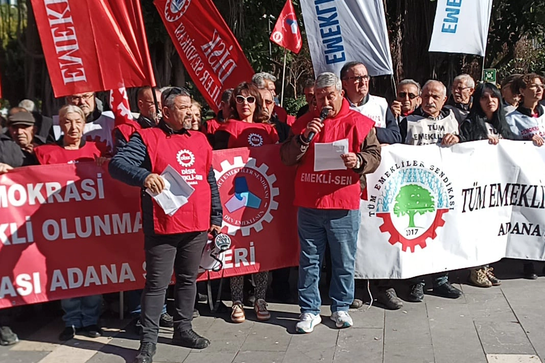 KESK Emekliler Sendikası, Emekliler Dayanışma Sendikası ve Tüm Emeklilerin Sendikası üyesi emekli vatandaşlar İnönü Parkında bir araya gelerek basın açıklaması gerçekleştirdi. Açıklamayı katılanlar adına DİSK Emekli Sen Akdeniz Bölge Başkanı Veli Ersoy ve Tüm Emeklilerin Sendikası Adana Şube Başkanı Yener Pirim okudu. Açıklamada, emekli maaşlarının yetersizliği ve artan yaşam maliyetleri nedeniyle yaşanan ekonomik zorluklara dikkat çekildi.