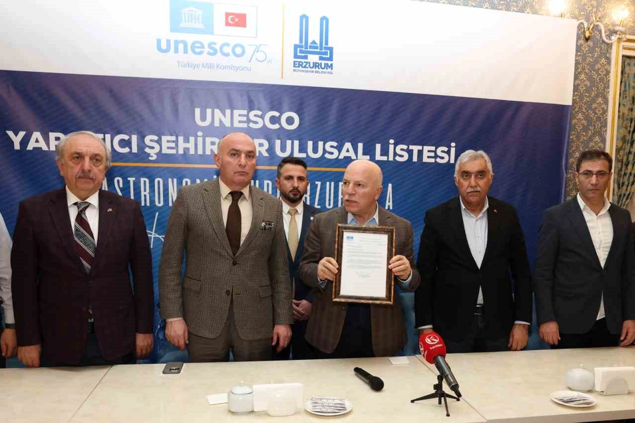 Erzurum Büyükşehir Belediye Başkanı Mehmet Sekmen, tarihi şehir Erzurum’un UNESCO Yaratıcı Şehirler Ulusal Listesi’ne "Gastronomi Şehri" unvanıyla girdiğini açıkladı. Müceldili Konağı’nda şehrin sivil inisiyatif kuruluşlarının temsilcileri ile birlikte sahur yapan Başkan Sekmen, burada yaptığı açıklamada, konuyla ilgili yapılan başvurunun değerlendirildiğini ve Erzurum’un UNESCO’nun listesine girdiğini ifade etti.