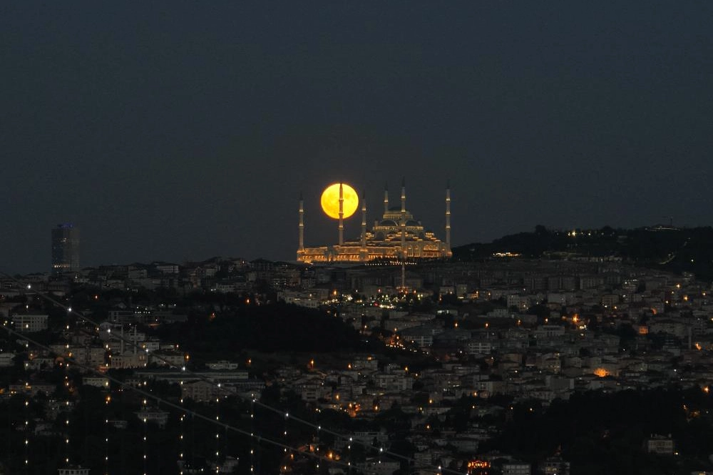 İstanbul semalarında akşam saatlerinde ortaya çıkan dolunay, şehri mest etti. 15 Temmuz Şehitler Köprüsü ve Çamlıca Camii ile birlikte görüntülenen dolunay, eşsiz bir manzara sundu.
