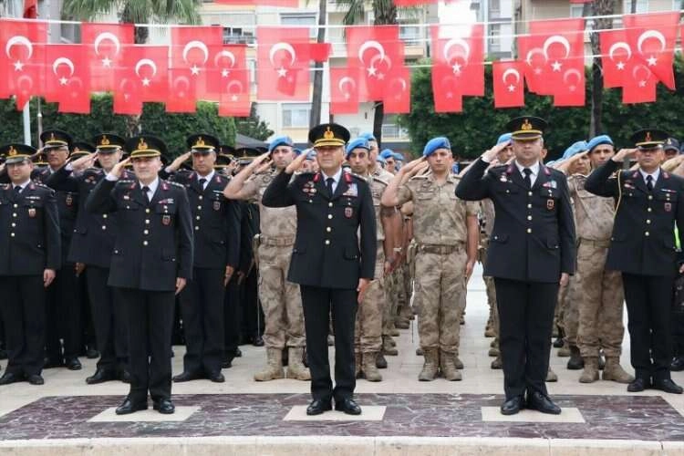 Mersin'de de Cumhuriyet Meydanı'nda gerçekleştirilen törende İl Jandarma Komutanı Tuğgeneral Necip Çarıkcıoğlu, Atatürk Anıtı'na çelenk bıraktı. Saygı duruşunun ardından İstiklal Marşı okunan programda, jandarmanın faaliyetlerinin tanıtıldığı sinevizyon gösterildi.