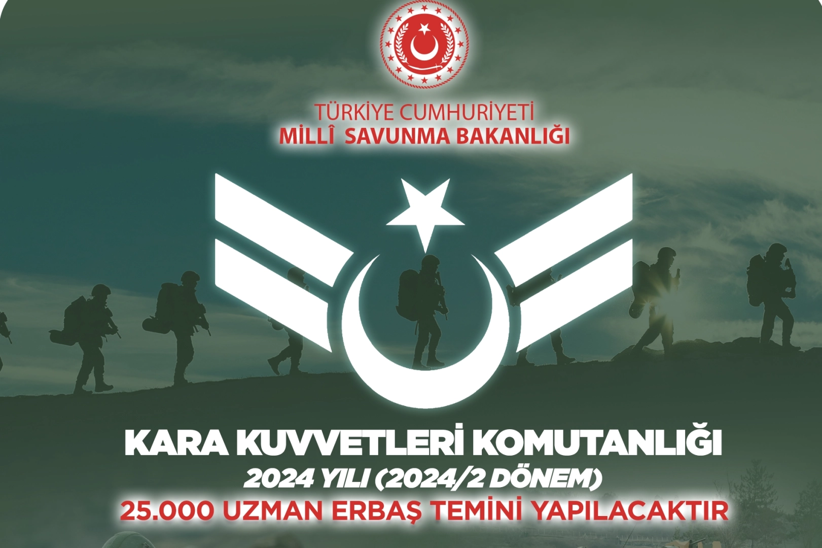 Kara Kuvvetleri Komutanlığı 25 bin uzman erbaş alımı yapacak. Bakanlığın sosyal medya hesabından yaptığı açıklamada konu hakkında şu ifadelere yer verdi: ‘ Kara Kuvvetleri Komutanlığı 2024 Yılı (2024/2 Dönem) Uzman Erbaş Temini Başvuru Kılavuzu yayımlanmıştır.’