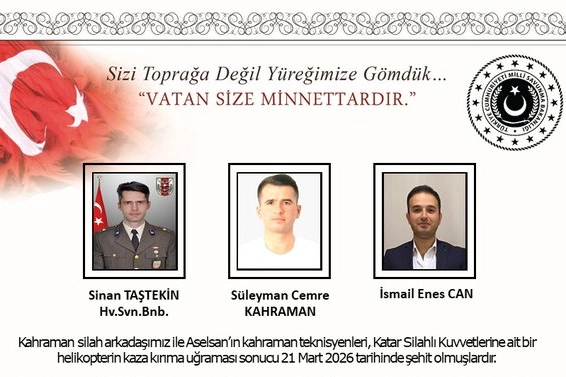 OLAY NASIL MEYDANA GELDİ?Kaza, 21 Mart 2026 tarihinde Katar’da yürütülen eğitim faaliyetleri sırasında meydana geldi. Katar-Türk Birleşik Müşterek Kuvvet Komutanlığı bünyesinde görev yapan Katar Silahlı Kuvvetlerine ait helikopter, teknik arıza nedeniyle denize düştü.