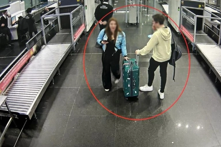 Görüntülerde; anne ve oğlunun araçla havalimanına geldiği, turnikelerden geçtikleri ve daha sonra pasaport kontrol noktasından geçerek uçağa bindikleri görüldü.
