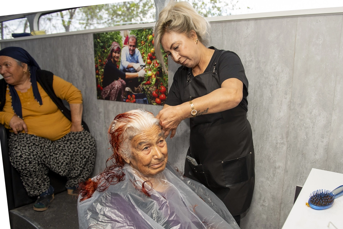Mersin Büyükşehir Belediyesi, Mobil Kuaför hizmetiyle kırsalda yaşayan vatandaşları Ramazan Bayramı’na hazırlıyor. Sosyal Hizmetler Dairesi Başkanlığı’na bağlı Mobil Kuaför hizmeti Mersin’in ilçelerinde kırsal mahalleleri tek tek ziyaret ediyor.