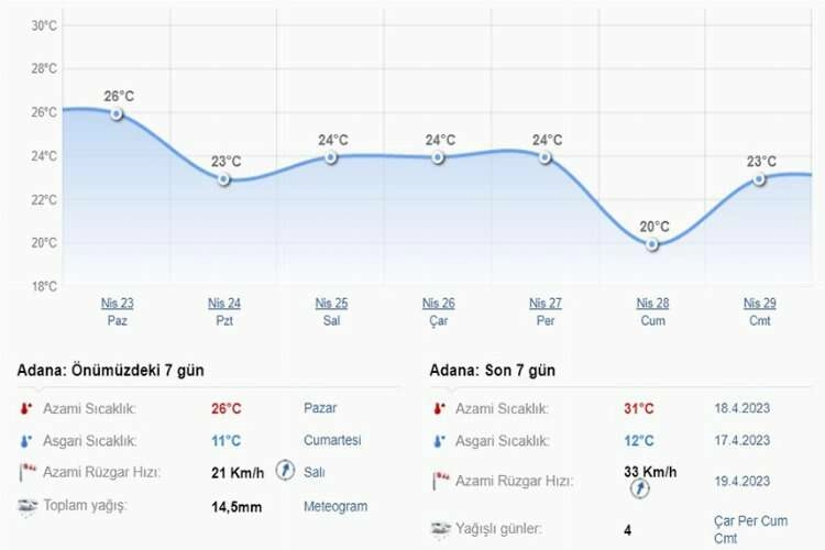 Meteoroloji 6. Bölge Müdürlüğünce yapılan duyuruda Adana ve çevresinin Çarşamba’dan Cumartesi Gününe kadar aralıklı yağışlı olacağı belirtildi.