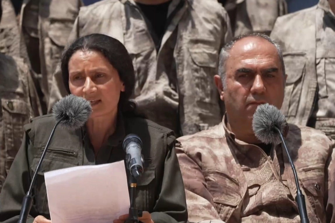 30 KİŞİLİK GRUP SİLAHLARINI İMHA ETTİ15 kadın ve 15 erkekten oluşan 30 kişilik bir PKK'lı grup, silahlarını yakarak imha etti. Grubun içerisinde KCK Yürütme Konseyi Eşbaşkanı Bese Hozat'ın da yer aldığı belirtildi. Kendilerini "Barış ve Demokratik Toplum Grubu" olarak adlandıran grup, törenin ardından sessizce mağaraya geri döndü.