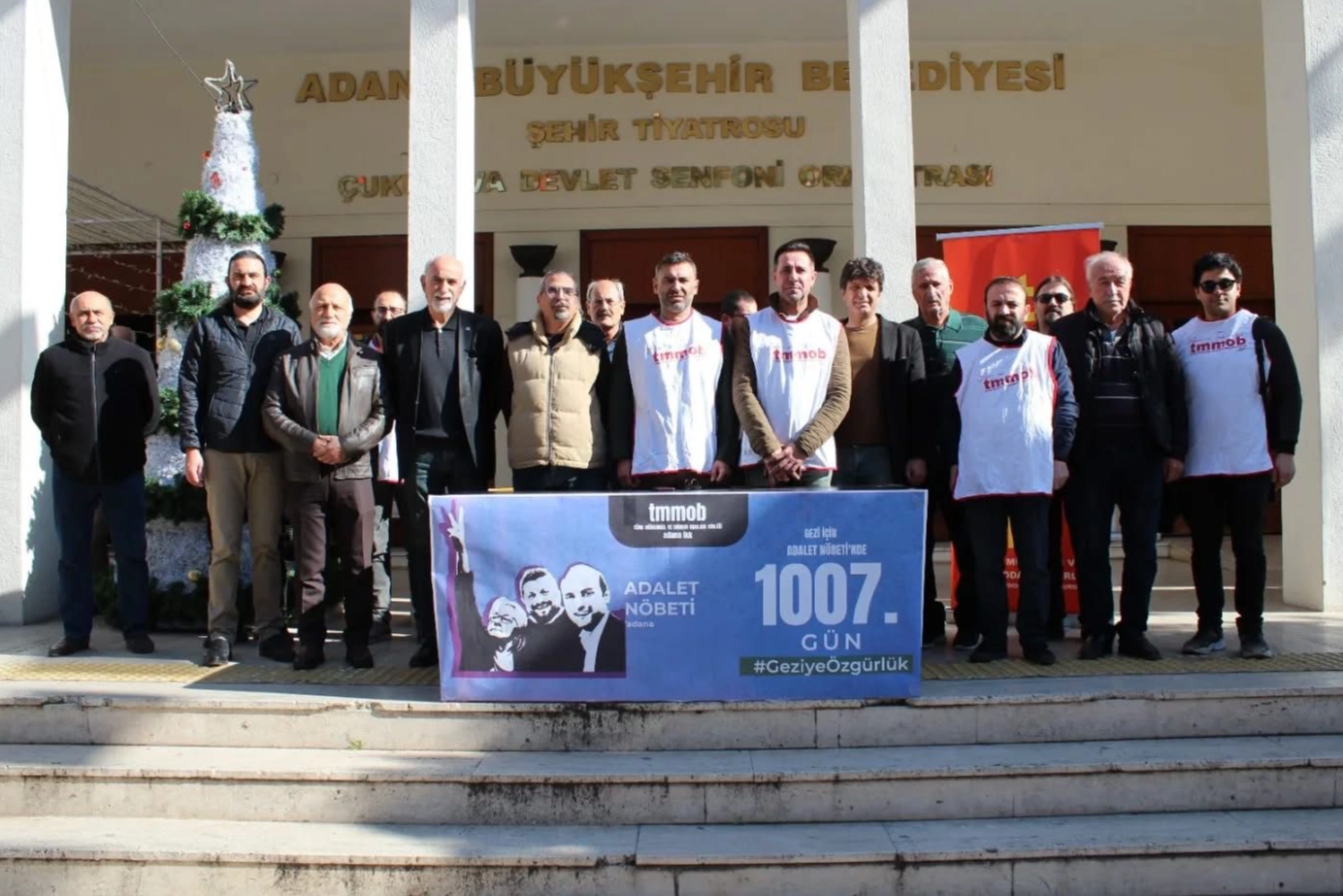 Türk Mühendis ve Mimar Odaları Birliği (TMMOB) Adana İKK üyeleri, Adana Büyükşehir Belediyesi Tiyatro Salonunun önünde bir araya gelerek Gezi Parkı'yla ilgili basın açıklaması yaptı. TMMOB Adana İKK Sekreteri Kerem Şahin’in okuduğu açıklamada, 1007 gündür içeride olan arkadaşları ve meslektaşlar için adalet talep etti. Şahin, mühendis, mimar ve şehir plancılarının halkın yararını savunma görevine dikkat çekerek, doğayı, tarihi ve yaşamı korumanın suç olmadığını vurguladı.
