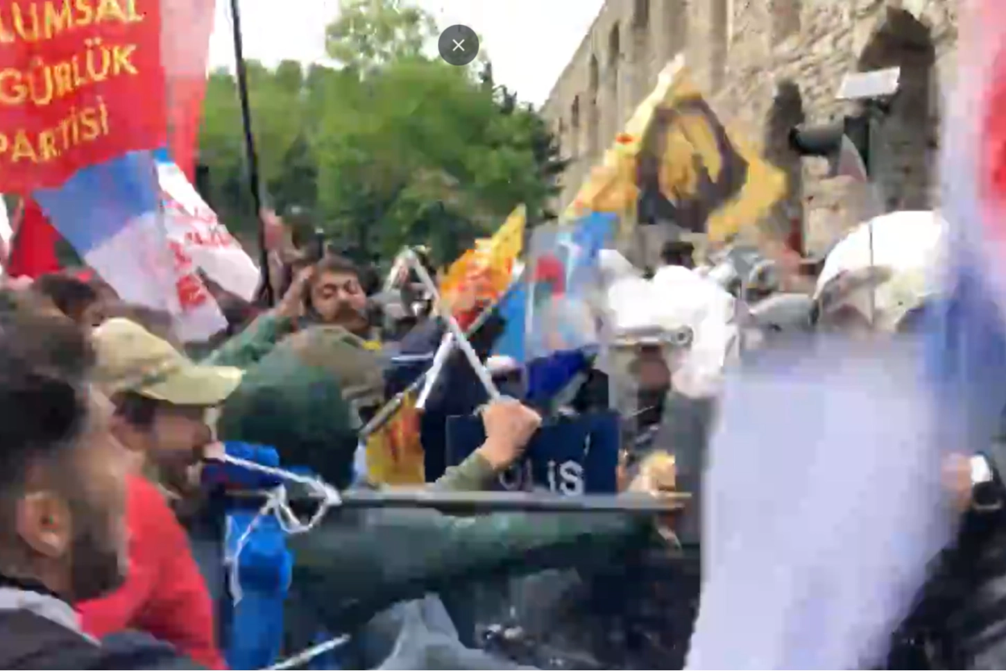 Saraçhane'de toplanan sendikalar, Taksim Meydanı'na yapmayı planladıkları yürüyüş kararı beklerken grupta bulunan bazı kişiler, Bozdoğan Kemeri'ne set çeken polislere ellerindeki pankartların sopalarıyla vurdu. Bu durum üzerine polis, söz konusu gruba müdahale etti.