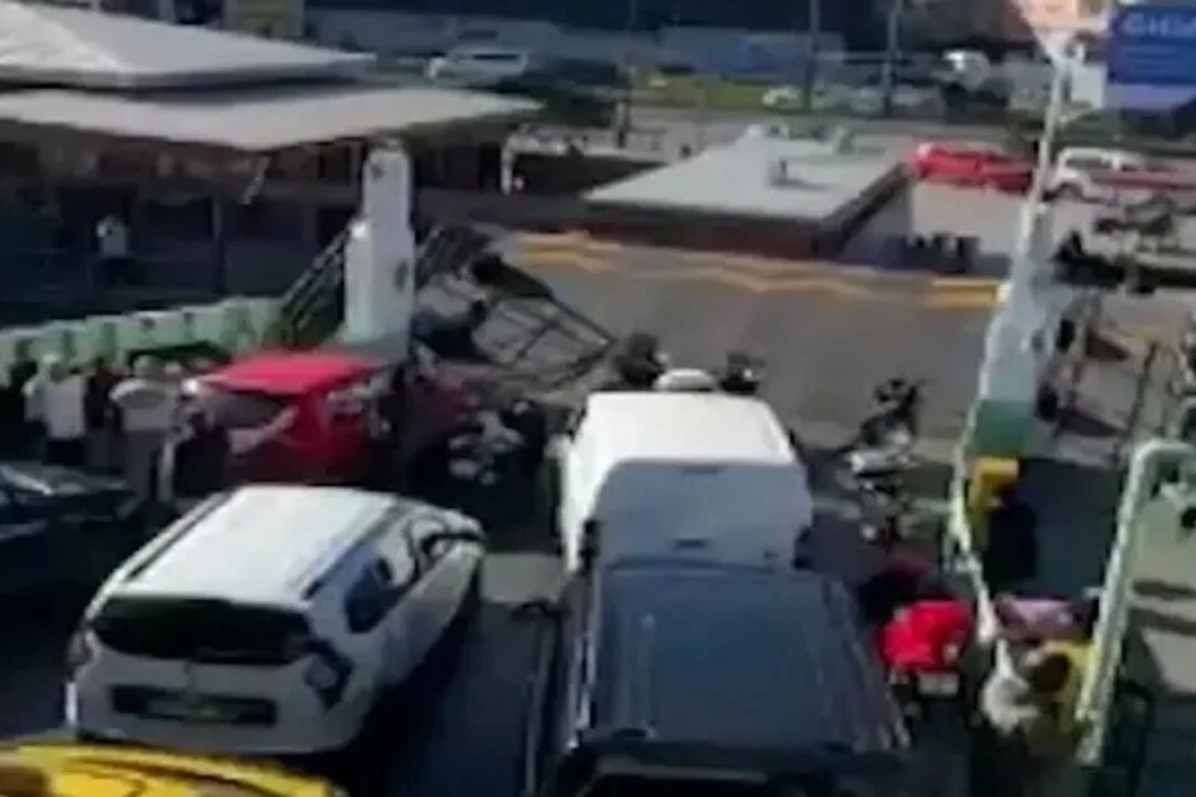 İstanbul Eminönü’nde Harem-Sirkeci seferini yapan arabalı vapur, dümeni kilitlenince önce İDO feribotuna, ardından iskeleye çarptı. Olayda ölen ya da yaralanan olmadığı öğrenildi. Arabalı vapurun iskeleye çarpma anı ise kameraya yansıdı.