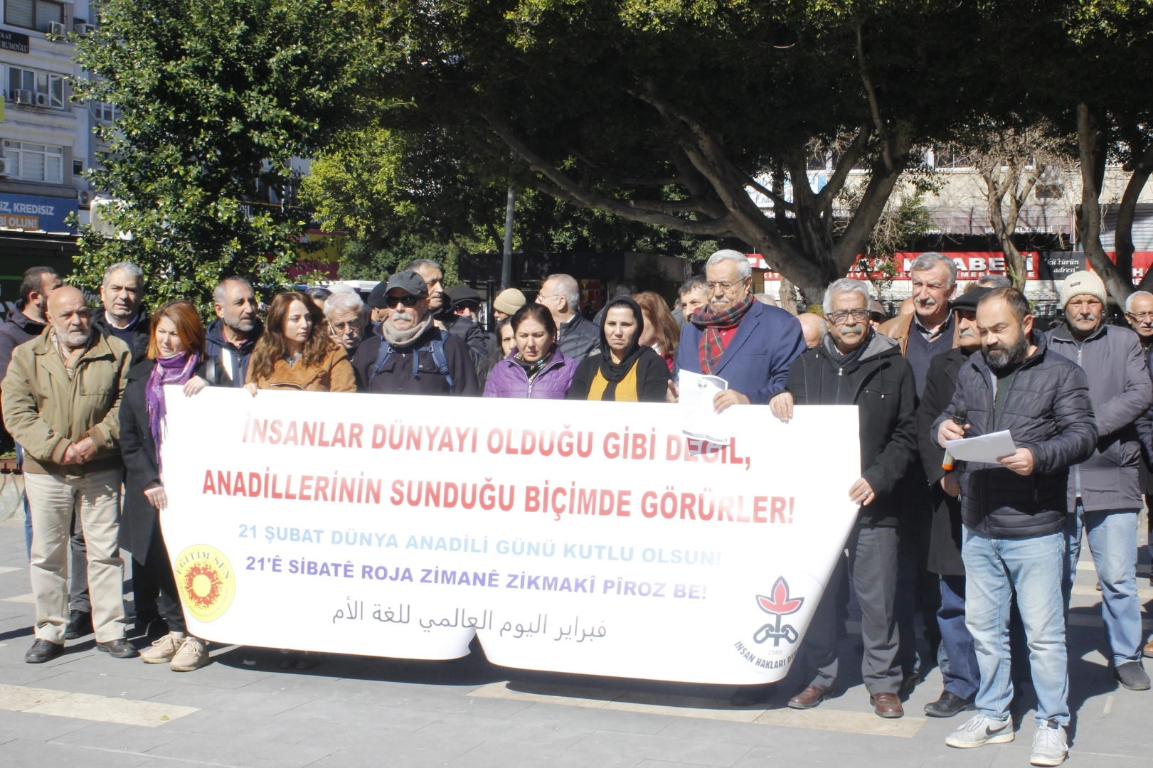 21 Şubat Dünya Anadili nedeniyle İnönü Parkı’nda Eğitim Sen ve İnsan Hakları Derneği bir araya gelerek basın açıklaması yaptı. Açıklamayı katılanlar adına Eğitim Sen Adana Şube Başkanı Fatih Toprak yaptı. Toprak, anadilin bireysel gelişim ve kültürel kimlik açısından kritik bir öneme sahip olduğunu ifade ederek, “Birleşmiş Milletler Eğitim, Bilim ve Kültür Örgütü (UNESCO) 1999 yılında aldığı kararla 21 Şubat’ı, “Uluslararası Anadili Günü” olarak kabul etmiştir ve ilk kez 2000 yılında, dünya çapında çok kültürlü yaşamı ve kültürel çeşitliliği desteklemek amacıyla kutlanmaya başlamıştır” dedi.