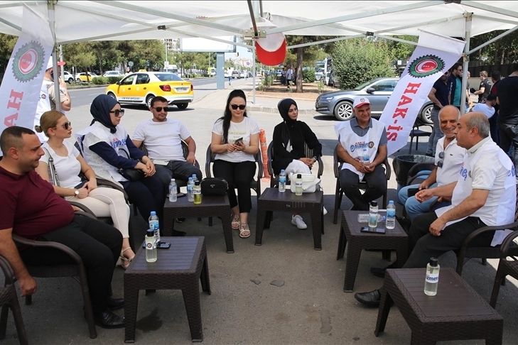 İşçileri ziyaret eden HAK-İŞ İl Başkanı Fatih Akdeniz, gazetecilere yaptığı açıklamada, çalışanların yanında olduklarını, eylemlerinin devam ettiğini söyledi.