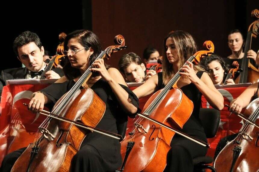90 kişilik orkestra ve 55 kişiden oluşan koro, günün anlam ve önemini belirten marşları seslendirdi.
