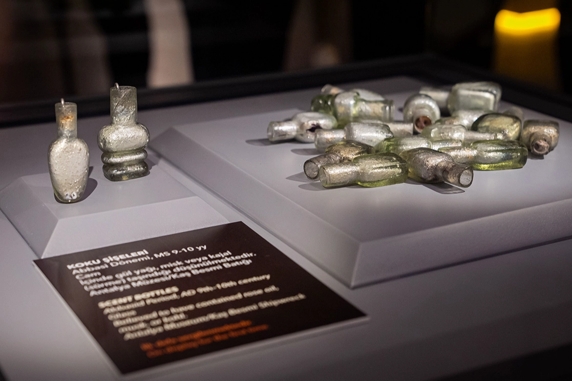 Serginin dikkati çeken eser grubundan biri, 6-7 santimetre boylarındaki, Abbasi dönemine ait 15 cam koku şişesi oldu.