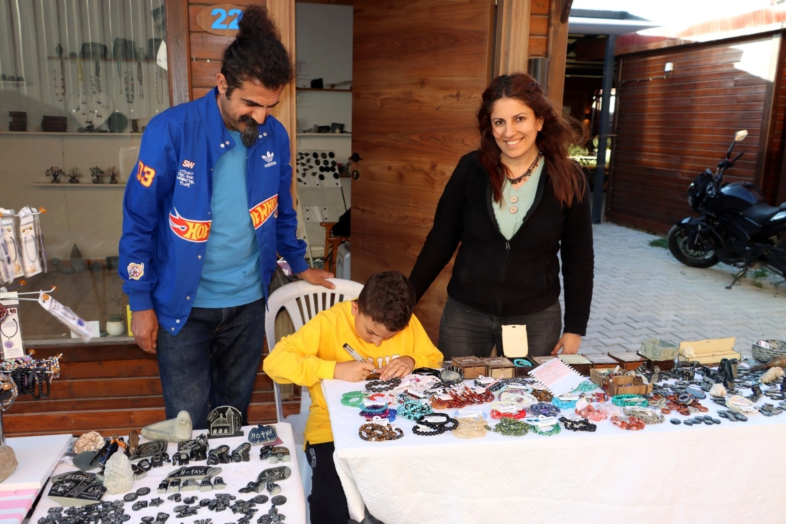 Özalp, şunları kaydetti: “Birçok sanatçıyı bir araya getiren çarşımız bizim için umut oldu. Burada yeniden üretmeye başladım. 12 yıldır yanımda olan eşim en büyük yardımcım. Serpantin taşı ustalığını babamdan öğrendim, şimdi de oğluma aktarıyorum. Oğlum derslerinden arta kalan zamanlarda bize katılıyor. Daha yolun başında ama çok yetenekli. İnanıyorum ki çok iyi bir usta olacak.”