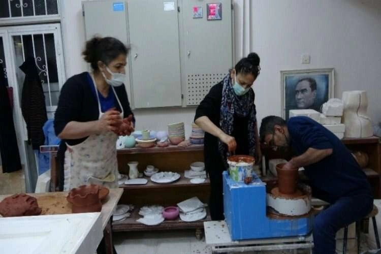 Kozan Halk Eğitimi Merkezi bünyesinde açıla seramik ve çömlek kursuna katılan kadınlar, seramik sanatçısı Nermin Elmalı ve Adanalı Çömlek Ustası Bilgin Özdemir ile bir araya gelerek unutulmaya yüz tutan sanatlarını geleceğe taşıyor.