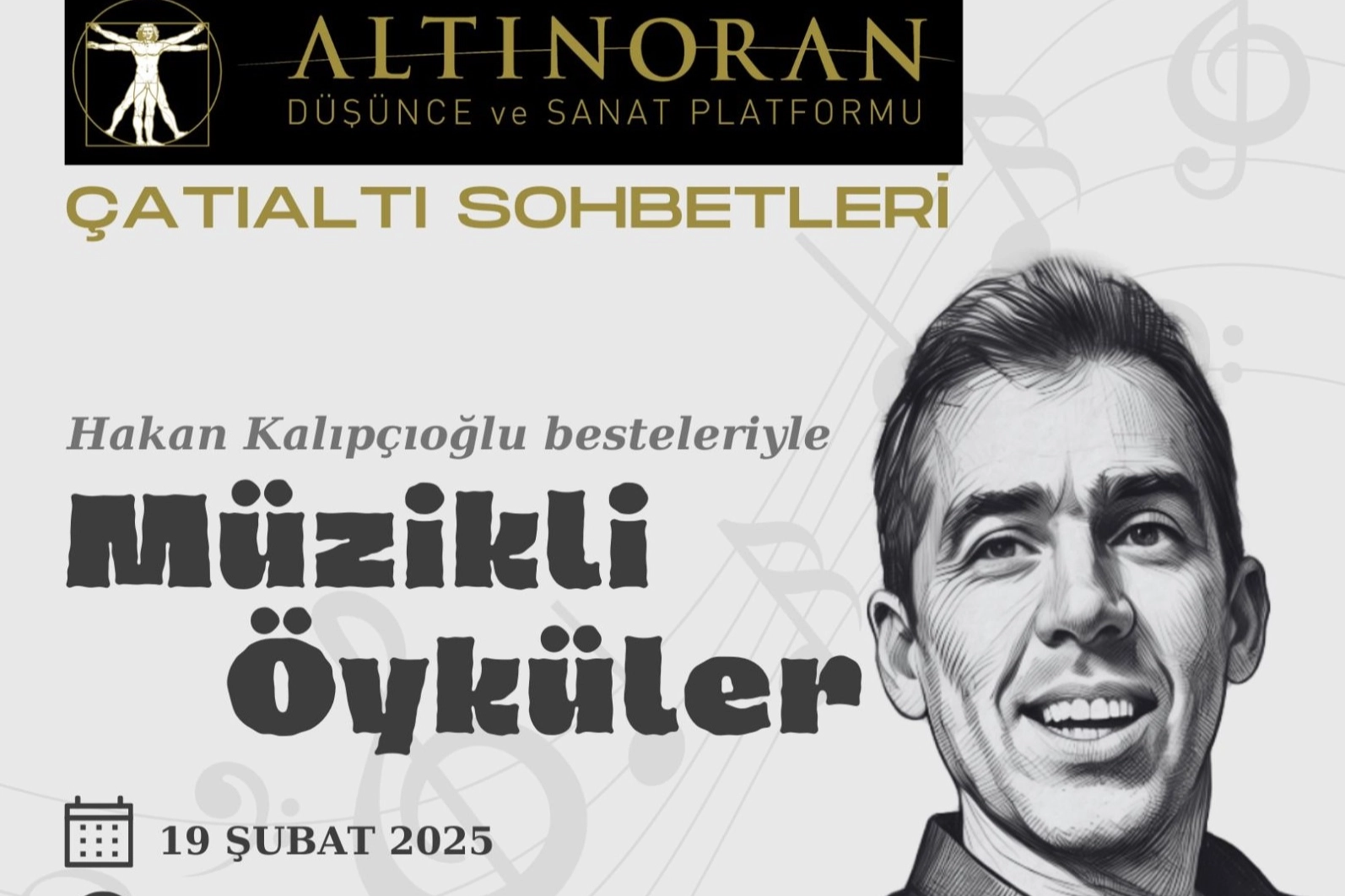 İlk etkinliklerinin yoğun ilgi görmesinin sevincini yaşadıklarını ifade eden Dr. Uygur, "19 Şubat Çarşamba günü yapacağımız ikinci buluşmamızda ise Altınoran atölyelerinde bir fotografçı olarak sanat yaşamına başlayıp, bir besteci olarak kendini yetiştiren Hakan Kalıpçıoğlu'nun özelinde, sanatın disiplinler arası tavrının yaratıcılığa etkisi üzerinde duracağız. O akşam, Hakan Kalıpçıoğlu'nun bestelerini ilk dinleyen kişiler olma şansını yakalayacağız. Çatıaltı'mız, bu kez müzikle yazılan öykülerin gecesi olacak." dedi.