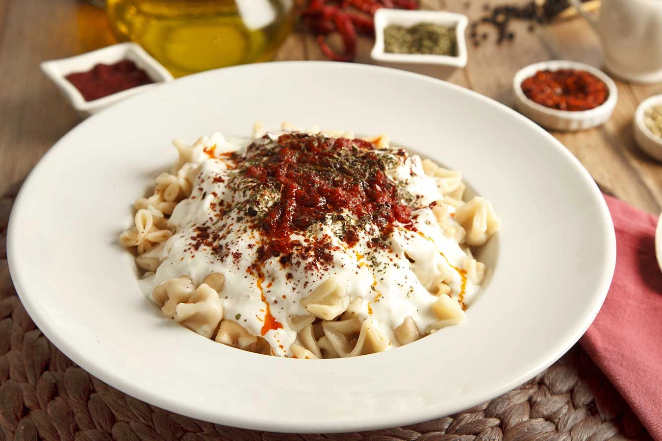 Mantı - Türkiye: Türk mutfağının incisi olarak kabul edilen mantı, küçük hamur parçalarının içine doldurulan genellikle kıyma, soğan ve baharat karışımıyla hazırlanır. Daha sonra kaynar suda haşlanarak servis edilir ve genellikle sarımsaklı yoğurt ve tereyağında kızartılmış biber sosuyla servis edilir.