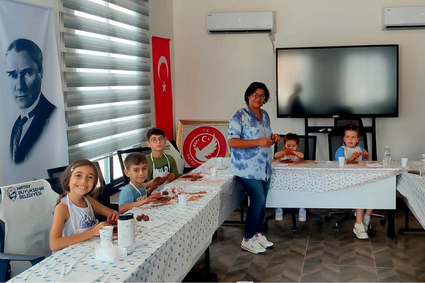Hatay Büyükşehir Belediyesi Kültür ve Sosyal İşler Dairesi Başkanlığı ile Kültür Sanat Çarşısı el sanatçıları iş birliğiyle düzenlenen ücretsiz atölye çalışmaları sürüyor. Son etkinlikte, heykeltıraş Semire Erdem öncülüğünde gerçekleştirilen atölyede çocuklar çamurdan “Hayat Ağacı” figürü yaptı. Renkli ve keyifli anlara sahne olan etkinlikte ortaya çıkan eserler, eğitmen Erdem’den tam not aldı.