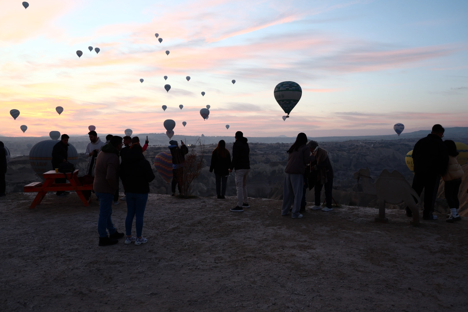 Tarihi ve kültürel dokusuyla yılda milyonlarca turist ağırlayan Kapadokya bölgesi bu yılbaşında da doluluk oranı yüzde 100'ü buldu. Yeni yıla Kapadokya’da giren yerli ve yabancı turistler yılın ilk güneşini ve Kapadokya’yı gökyüzünden izleme imkânı buldu. Olumlu hava şartları da ve sabahın erken saatlerinde havalanan sıcak hava balonları yaklaşık 1 saat boyunca havada kalıyor. Peribacaları ve eşsiz vadilerin üzerinden süzülen balonlara binenler de gökyüzünden güneşin doğuşunu seyretme fırsatı buluyor. Son 10 yıl içinde dördüncü defa yılın ilk gününde havalandıklarını söyleyen sıcak hava balon pilotu Ahmet Başyiğit, “Yeni yılın ilk günü. Bu gün hava çok güzel ve güzel bir uçuş olacağını planlıyoruz. Yeni yılın bol turistli, bol uçuşlu bir yıl olmasını diliyorum. Yeni yılın ilk gününde hava çok güzel. Hava açık ve gün doğumunu yakalamayı hedefliyoruz.