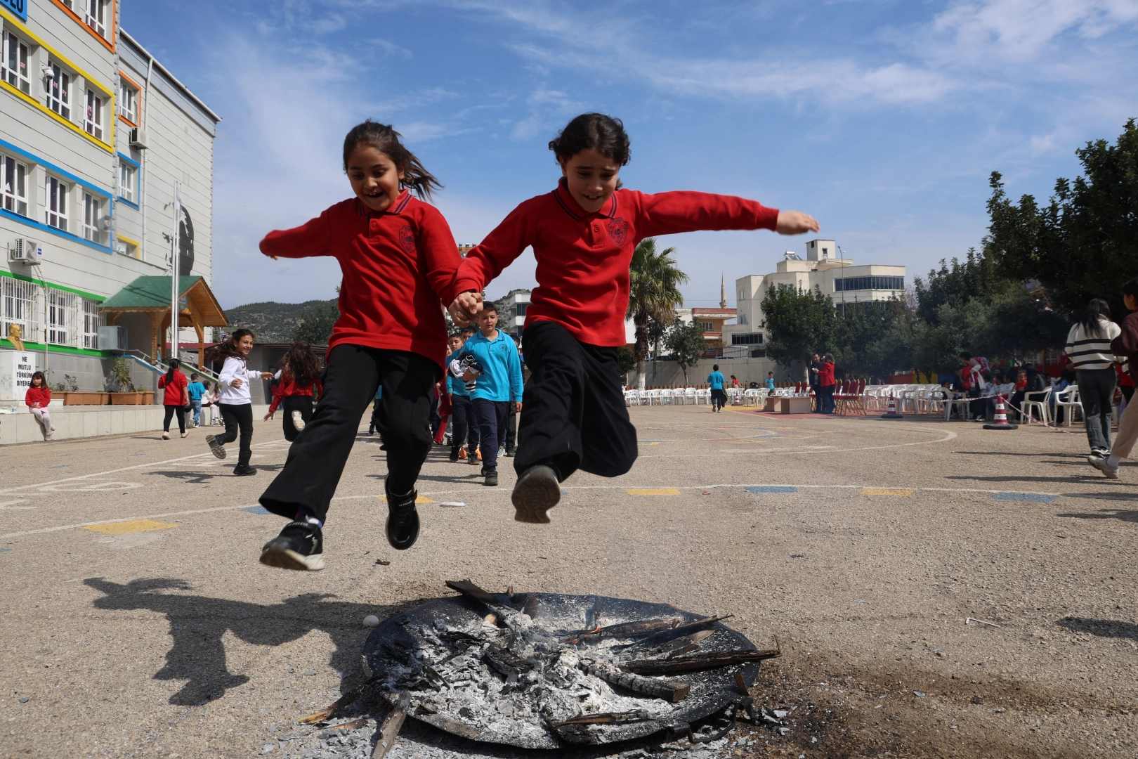 Öğrenciler, Nevruz'un coşkusuna ortak olurken, etkinlik boyunca geleneksel oyunlar ile renkli görüntüler ortaya çıktı.