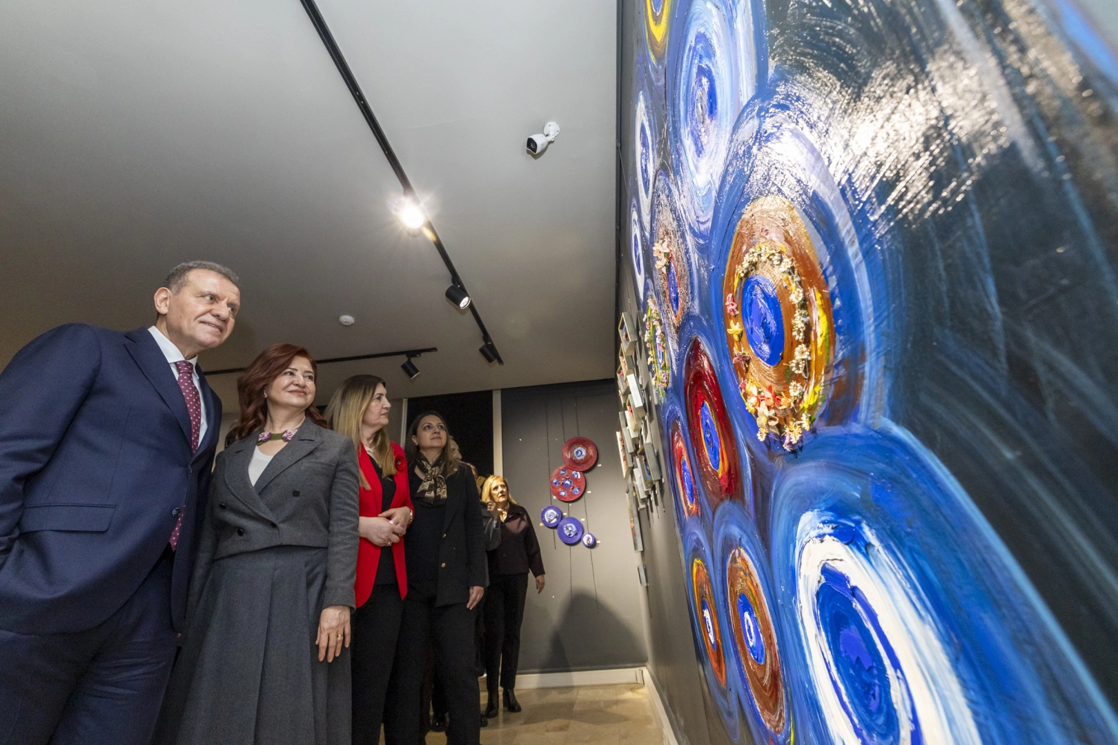 Konuşmaların tamamlanmasının ardından protokol üyeleri ve üretici kadınların katılımıyla kurdele kesilerek sergi ziyarete açıldı. 31 Ocak tarihine kadar açık kalacak olan sergiyi gezen Başkan Vahap Seçer, sanatçıya destek olmak amacıyla '12 Ay' ve 'Emanet' isimli, iğne oyasının yağlı boya ile buluştuğu iki tabloyu satın aldı.