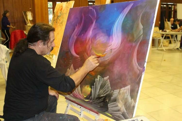 Sanatçılar, yağmura rağmen resim yapma sevdalarından vazgeçmedi. Etkinlik bugün Abidin Dino Parkı yerine Adana Büyükşehir Belediyesi Tiyatro Salonu’nda kaldığı yerden devam ediyor. Sanatçılar olumsuz hava koşullarına aldırış etmeden mutluluğun resmini yapmak durmadan fırçalarını hareket ettiriyor.