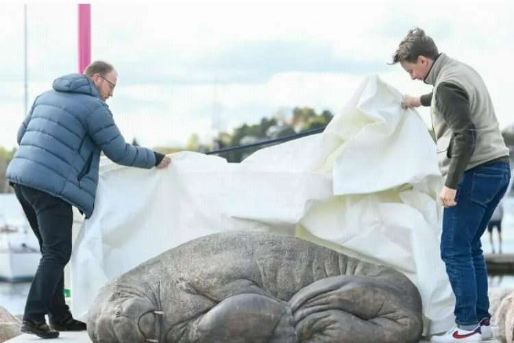 İnsanlar tarafından çok sevilen ve sıkça ziyaret edilen su samurunu yaşatmak için Norveçli sanatçı Astri Tonoian , hayvanın fotoğraflarına bakarak heykelini yapmak için günlerini harcadı.