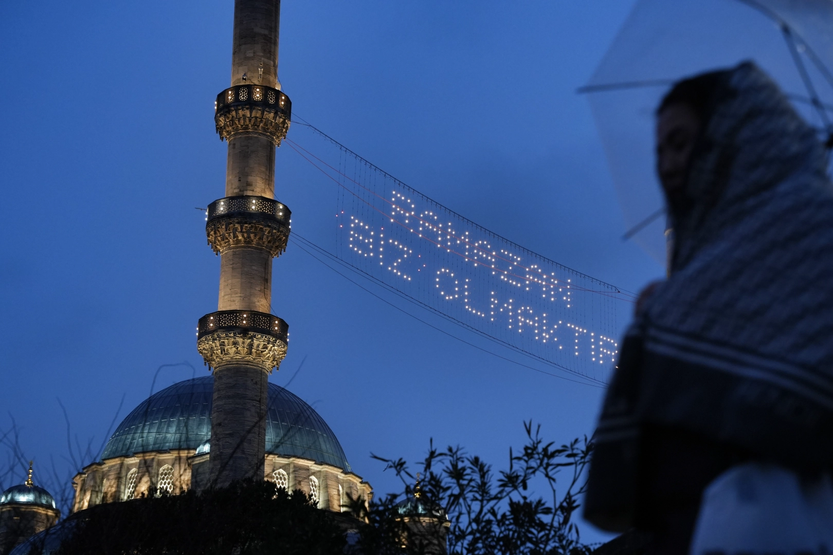 Sahur hazırlıklarına saatler kala dron ile kaydedilen görüntülerde, minareler arasına asılan mahyaların şehrin tarihi dokusuyla bütünleştiği görüldü. Süleymaniye Camii’nde "Ramazan Kur’an Ayıdır" yazılı mahya semaları süslerken, Yeni Camii’nde de minareler arasına 'Ramazan biz olmaktır' yazıldı. Ramazan ayı boyunca İstanbul'daki camilerde beş farklı mahya yazısı yer alacak.