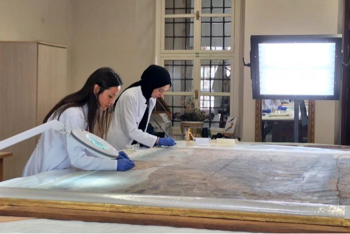 MEDİNE’ TABLOSUNUN RESTORASYONUNDA SONA GELİNDİGörsel belge niteliği taşıyan ‘Mekke’ ve ‘Medine’ temalı iki tablo için restorasyon planı hazırlandı. Plan kapsamında ‘Medine’ tablosunun restorasyonunda sona gelindi. ‘Mekke’ temalı tablonun ise belgeleme işlemi tamamlandı. ‘Mekke’ tablosu mikroskop ve infrared incelemesi, ön ve arka yüzey temizliği, sağlamlaştırma, koruma ve bakım gibi bir dizi uygulamadan geçecek. Bugüne kadar sergilenmeyen tablolar, restorasyonları tamamlandıktan sonra sanatseverlerle buluşturulacak.