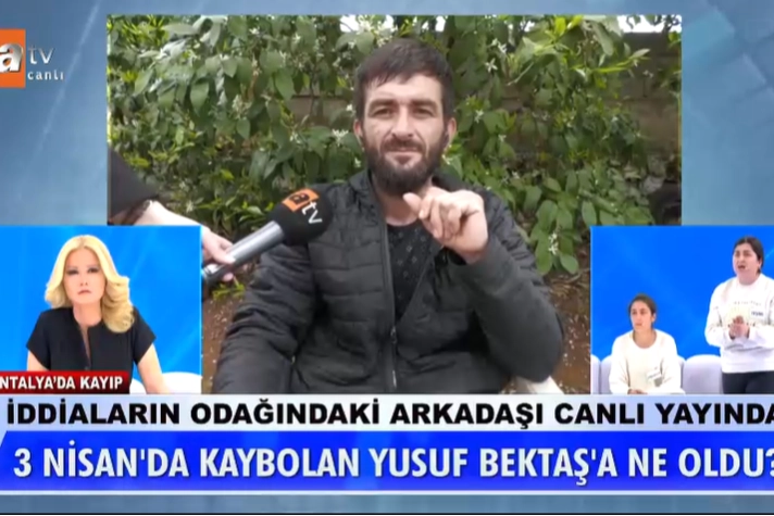 Müge Anlı'nın sunduğu ünlü televizyon programında, Yusuf Bektaş'ın kayboluşu tüm detaylarıyla ele alındı. Bektaş’ın yakınları, son görüştüğü arkadaşıyla ilgili şüphelerini dile getirerek, programda canlı yayına bağlandı. Konunun odağındaki arkadaş ise yayında yaptığı açıklamalarda, kaybolan gencin kaybolduğu günden bu yana kendisinin de büyük bir stres yaşadığını belirtti. Ancak, ailesi hala şüphelerini dile getirerek, olayın arkasındaki sırları öğrenmek için daha fazla bilgi talep ediyor.