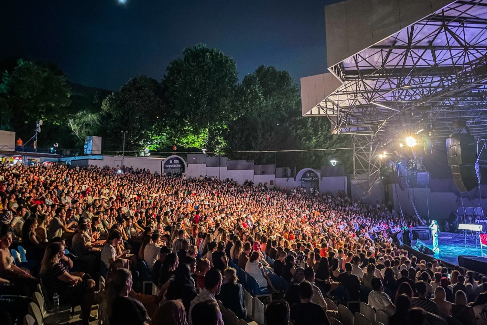 Tüm biletlerin tükendiği ve kapıda uzun kuyrukların oluştuğu konserde sahne alan Yıldız Tilbe, geçtiğimiz hafta yayınladığı kısa süre içerisinde dijital platformda ve radyolarda en çok dinlenenler arasına giren ‘Nar Tanem', ‘Ben Bir Şarkıyım-Söz Müzik Sensin' ve ‘Yine Sevenler Sevsin' şarkılarını sevenleriyle birlikte seslendirdi. Kendine has tarzı ve sahnede ki danslarıyla da ardından sıkça söz ettiren Tilbe, muhteşem performansıyla müzikseverlerden alkış aldı. Kendisini dinlemeye gelen binler hayranının Kurban Bayramını önceden kutlayan Yıldız Tilbe, “Herkesin şimdiden bayramı kutlu olsun. Sevdiklerinizle nice bayramlar dilerim” dedi. Yaklaşık iki saat boyunca sahne yıldız gibi parlayan başarılı sanatçı, aşk şarkılarının yanı sıra potpori şarkılarla da hayranlarının coşkusunu ikiye katladı.