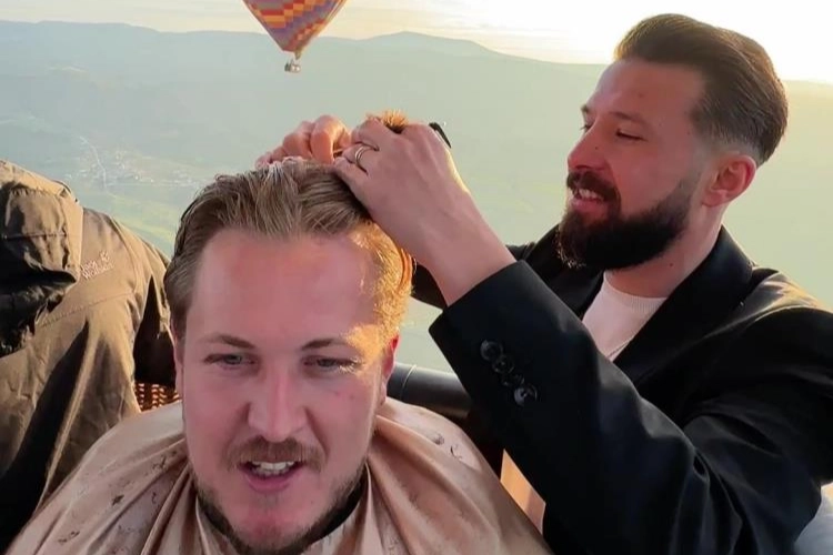Sürekli müşterisi olan Nuri Ersoy'u yerden 300 metre yükseklikte tıraş olmaya ikna eden Mehmet Çağdaş, yerli ve yabancı turistlerin meraklı bakışları arasında eline makas ve tarağı alarak tıraşa başladı. Yaklaşık 1 saat süren balon turu boyunca müşterisinin tüm saç bakımını tamamlayan Çağdaş, verdiği sıra dışı bu hizmetle beğeni topladı. Çağdaş’ın müşterisi gökyüzünden Pamukkale’yi izlerken yaptığı tıraşla ilgili olarak yayınlanan videosu, sosyal medyada binlerce kişi tarafından izlendi.