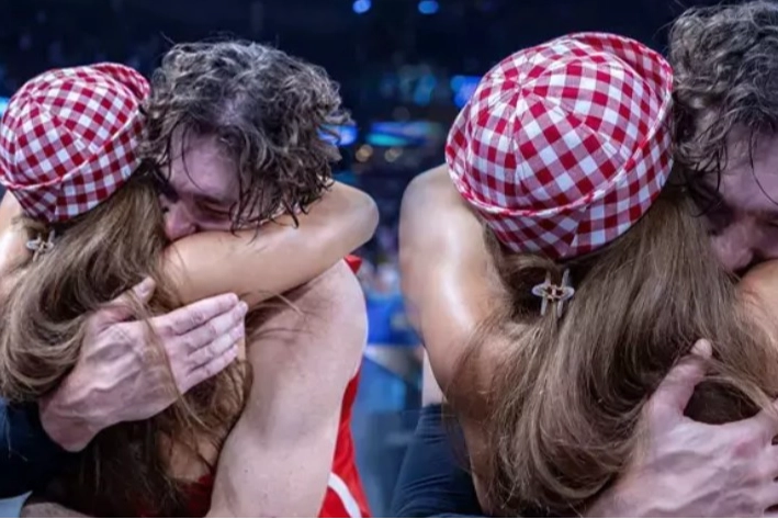 ‘Kan Parası’, ‘Savaşçı’, ‘İstanbullu Gelin’, ‘Hercai’ ve ‘Gizli Bahçe’ gibi yapımlarla tanınan oyuncu Ebru Şahin, A Milli Basketbol Takımı’nın Letonya karşılaşmasını tribünden takip etti. Maçın ardından Türkiye’nin 93-73’lük galibiyetini sevinçle kutlayan Şahin, eşi Cedi Osman’a koşarak sarıldı ve o anları sosyal medya hesabından paylaştı.