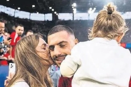 Maç sonrası büyük oğulları Kais Ömer ile birlikte sahaya inen Heidi, eşi Merih Demiral ile galibiyet sevincini paylaştı.