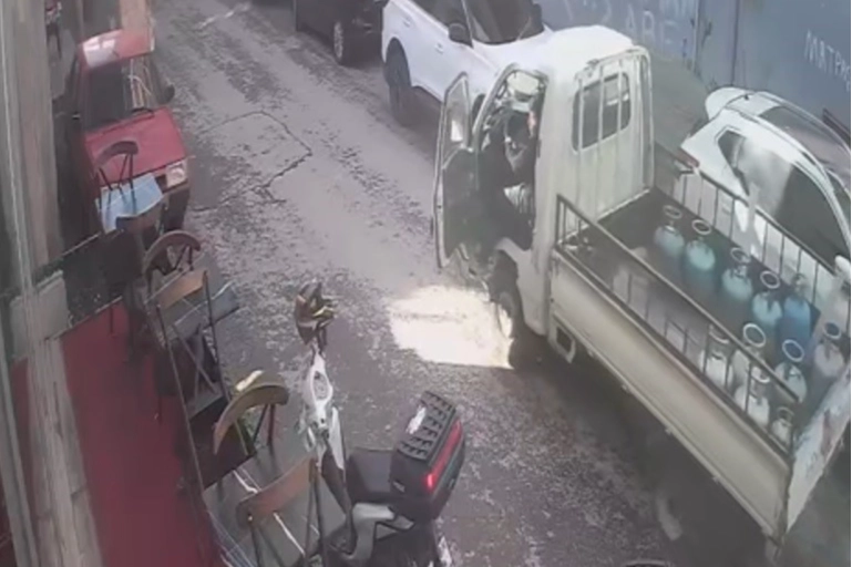 Muş’ta park halindeyken aniden hareket eden tüp yüklü kamyonet, 13 yaşındaki Yusuf’un dikkati sayesinde durduruldu. Güvenlik kamerasına yansıyan görüntülerde, yokuş aşağı ilerleyen kamyonetin kontrolden çıkmak üzereyken Yusuf tarafından fark edilip müdahale edildiği görüldü.