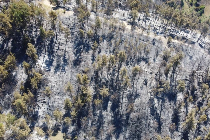 Adana'nın Kozan ilçesinde kırsal bir mahallede başlayan rüzgarın da etkisiyle kısa sürede büyüyen orman yangını 14 saatlik çalışmayla kontrol altına alınırken, 250 hektar alan zarar gördü. Bölgedeki hasar havadan görüntülendi.
