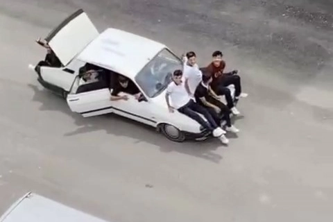 Olay, Yüreğir ilçesine bağlı Özgür Mahallesi’nde yaşandı. Mahalle ara sokaklarında seyreden bir otomobil, hem içi hem dışı çocuklarla doluydu. Aracın bagajında oturan çocukların yanı sıra, kaput üzerinde ve açık kapılardan sarkarak tehlikeli şekilde yolculuk eden çocuklar dikkat çekti.