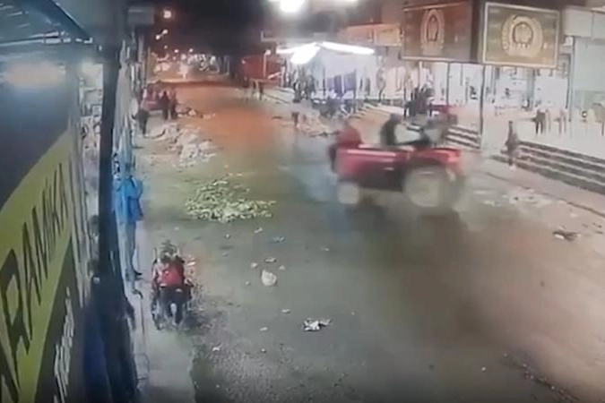 Adana'nın merkez Yüreğir ilçesinde traktörün bir iş yerine girme anı güvenlik kamerasınca kaydedildi.Yeşil Bağlar Mahallesi İbrahim Tatlıses Caddesi'nde, ehliyetsiz sürücünün kullandığı ve 4 kişinin bulunduğu traktör, kontrolden çıkarak bir iş yerine girdi.