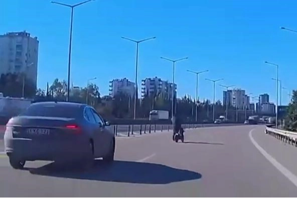 Adana trafiğinde otoyol üzerine çıkan bir bisikletli, hem kendi canını hem de trafik güvenliğini tehlikeye attı. Merkez Çukurova ilçesi Türkmenbaşı otoban girişi mevkiinde yaşanan olay, aynı güzergahta ilerleyen bir sürücünün dikkati sayesinde kazasız atlatıldı.
