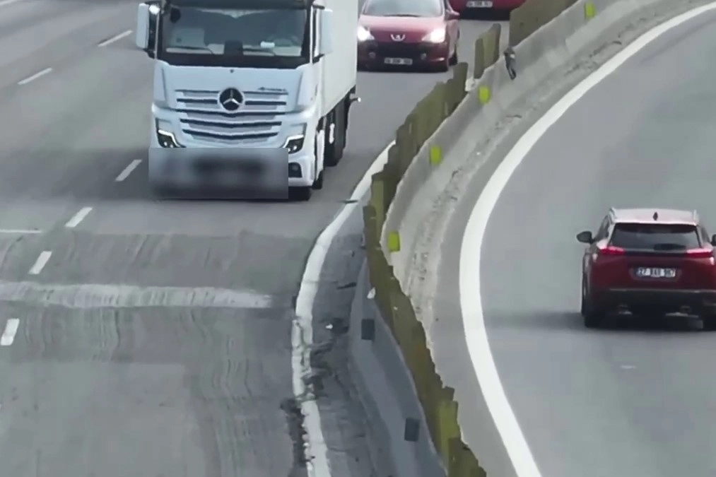 Adana'da jandarma ekipleri otoyolda şerit ihlali yapan tır ve kamyonlara idari para cezası uyguladı.