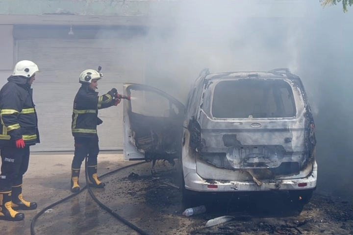 Adana'nın merkez Seyhan ilçesinde park halindeki hafif ticari araç yandı.Yeşiloba Mahallesi 46191 Sokak'ta park halindeki hafif ticari araç henüz belirlenemeyen sebeple alev aldı.Kısa sürede aracı saran alevleri gören çevredekiler durumu itfaiyeye bildirdi.Bölgeye sevk edilen Adana Büyükşehir Belediyesi itfaiye ekipleri, yangını kısa sürede söndürdü.Yangında araç kullanılamaz hale geldi.